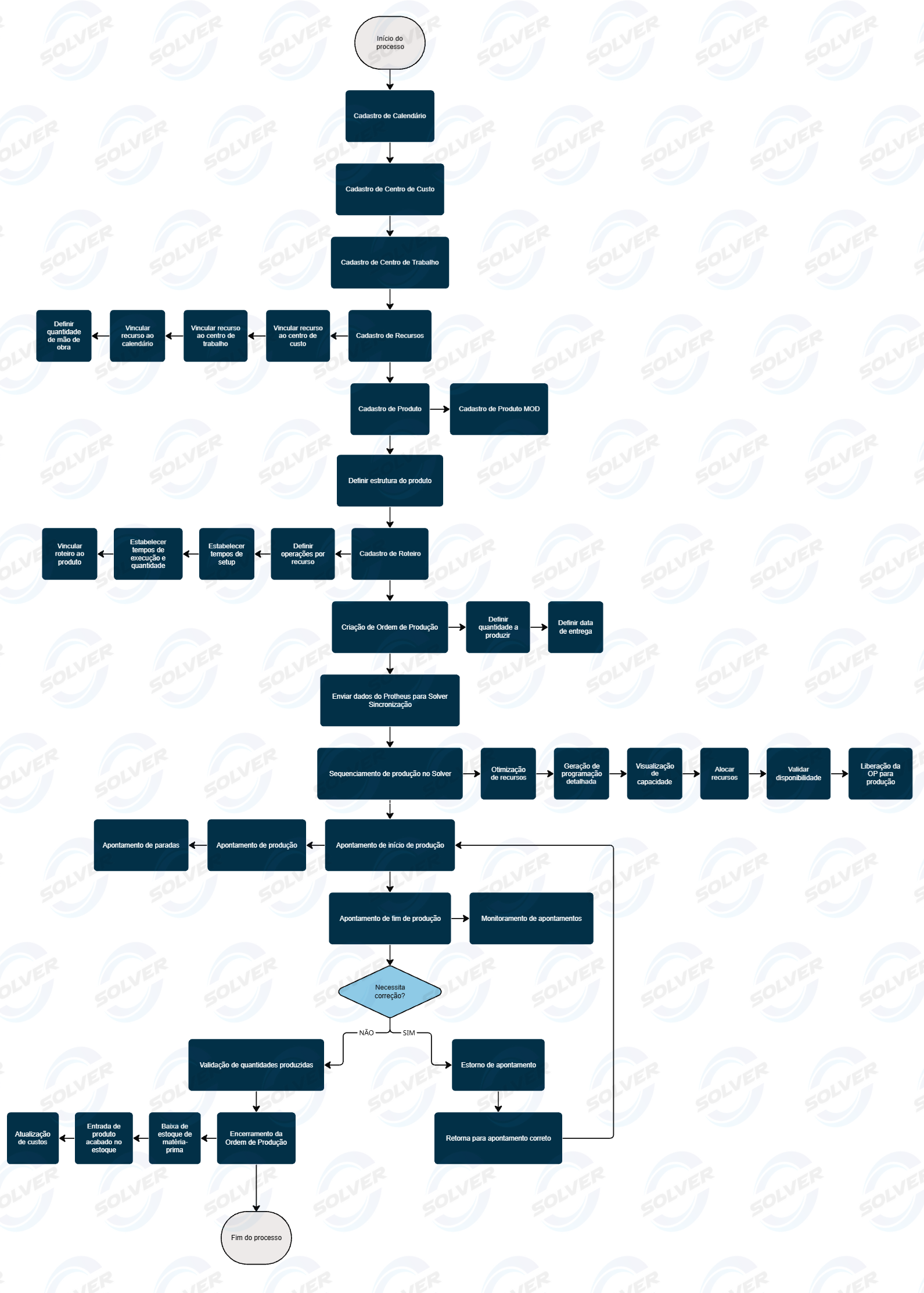 Esse fluxo garante controle completo da produção, desde o planejamento até a finalização, proporcionando maior eficiência, organização e confiabilidade no processo produtivo.